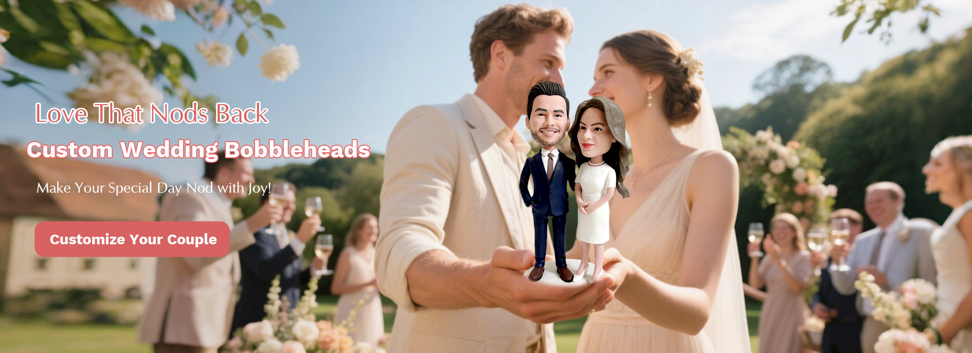 Wedding Couples Custom Bobblehead with Flowers