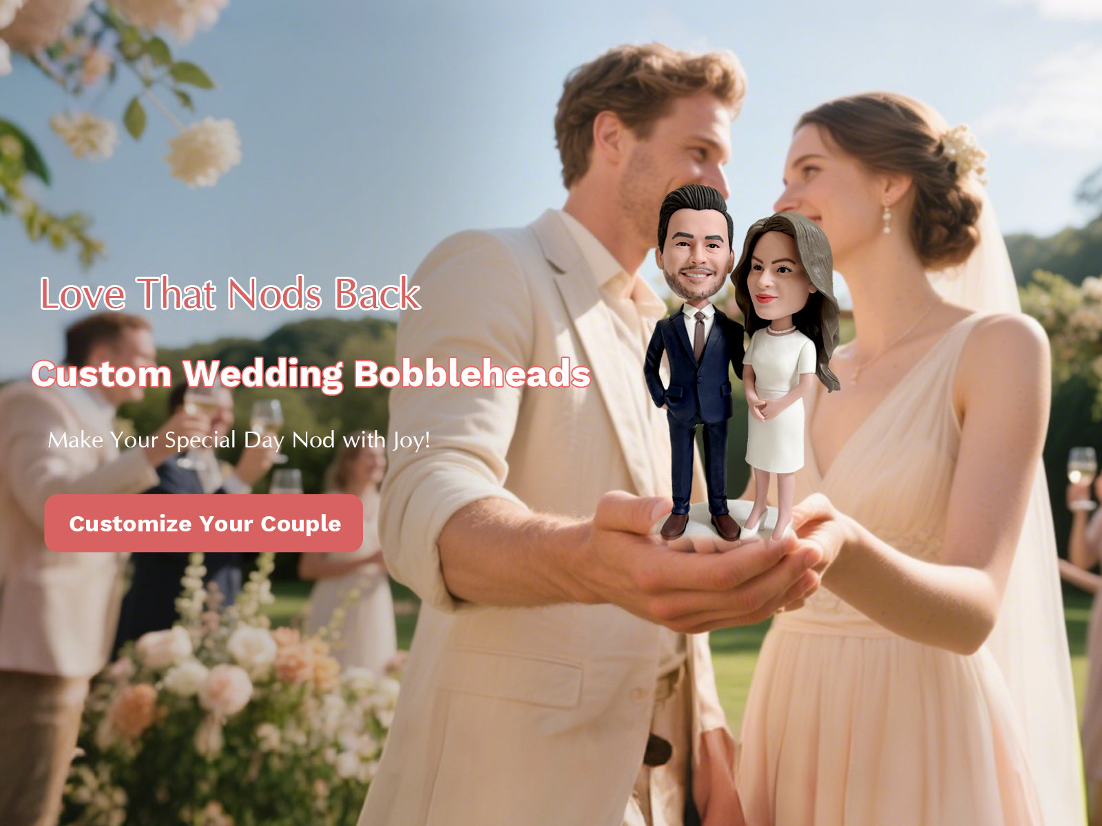 Custom Couple Bobblehead with Flowers