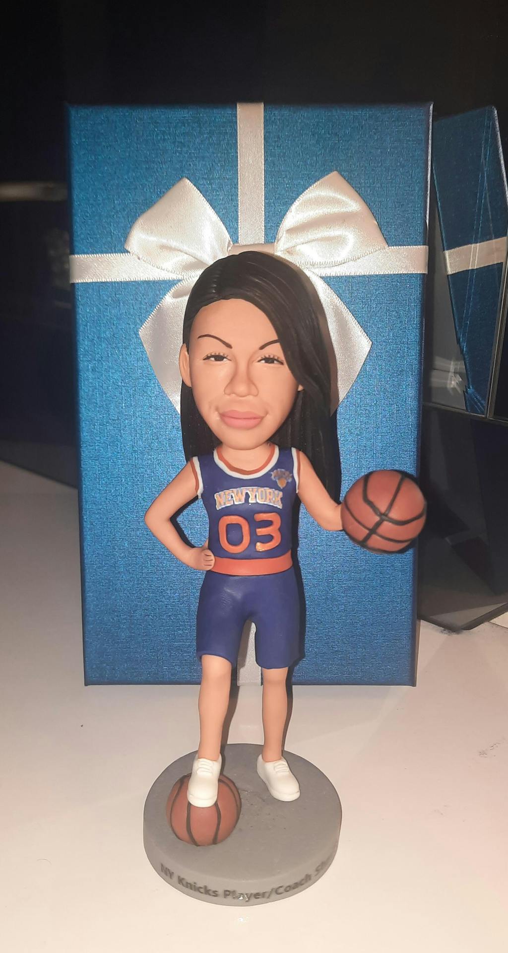 I had ordered the Bobblehead gift too late for Christmas, but early enough for the same person's birthday, and it arrived just before... SHE, AND ALL HER FAMILY AND FRIENDS, LOVED IT!!! Not only was it almost identical, facially, but the team ("NY KNICKS") uniform and number, AS WELL AS THE TEAM EMBLEM, were JUST AS I WANTED IT!!! The Bobblehead was placed in front of her TV before and during every game since she had it, and "Mini-'Te" (as she was named) started out 7 and 0!!! She is a MUST-HAVE in front of every game, as the team's "good luck charm," unbeknownst to the "NY KNICKS," and I couldn't be more Happy, more Proud, and more Thankful to "the Bobbleheads" team (especially Jessica and Lucy who I had the pleasure of communicating my design ideas to via email, sorry for being such a pain about it, lol). Thank you guys for the "Ultimate" gift. And, I hope to do business with you all again soon... I have also invited others to check out your site and gift selections, I pray they do. THANK YOU, AGAIN, you are truly artists, indeed!!! God bless... 🫡🙏🏽🏆